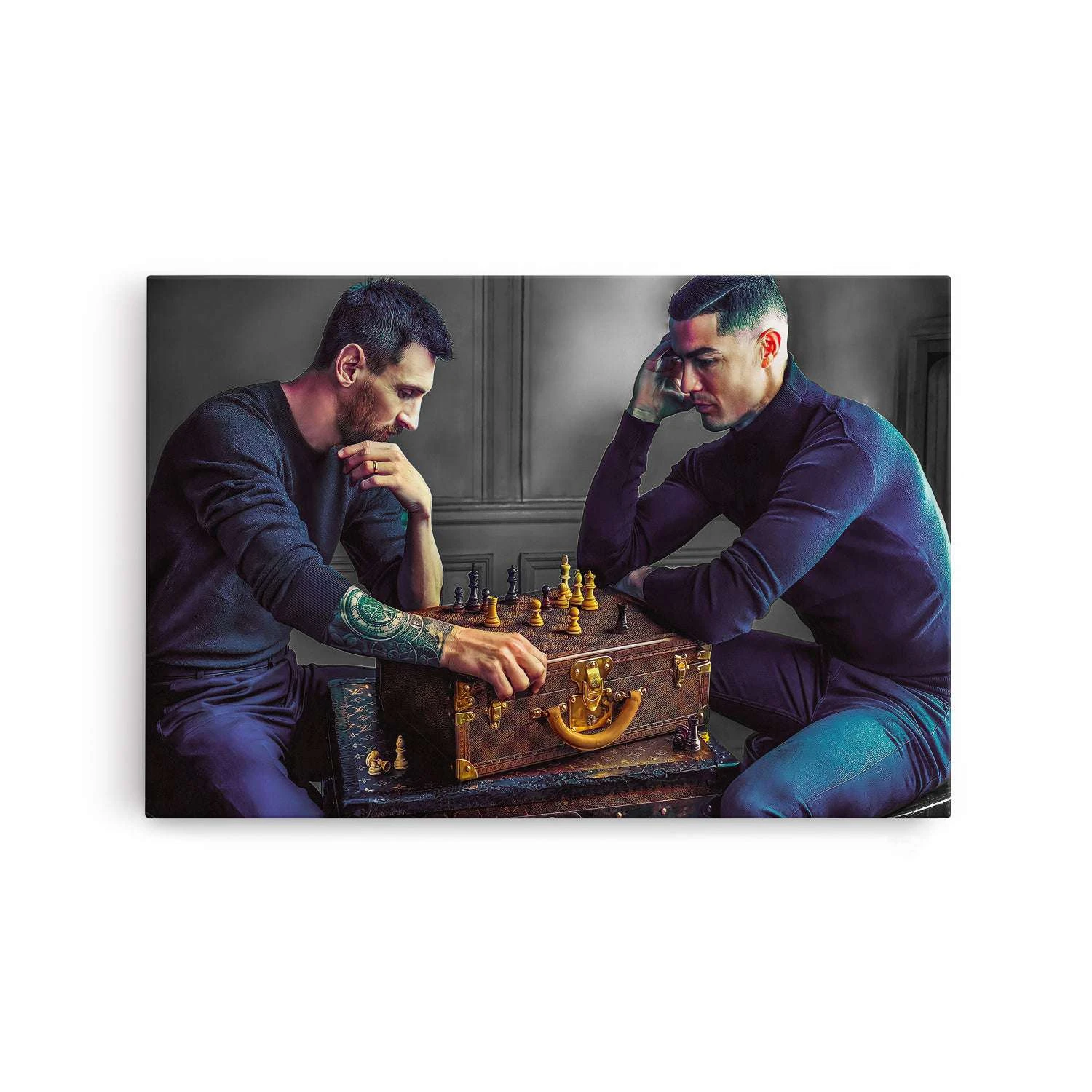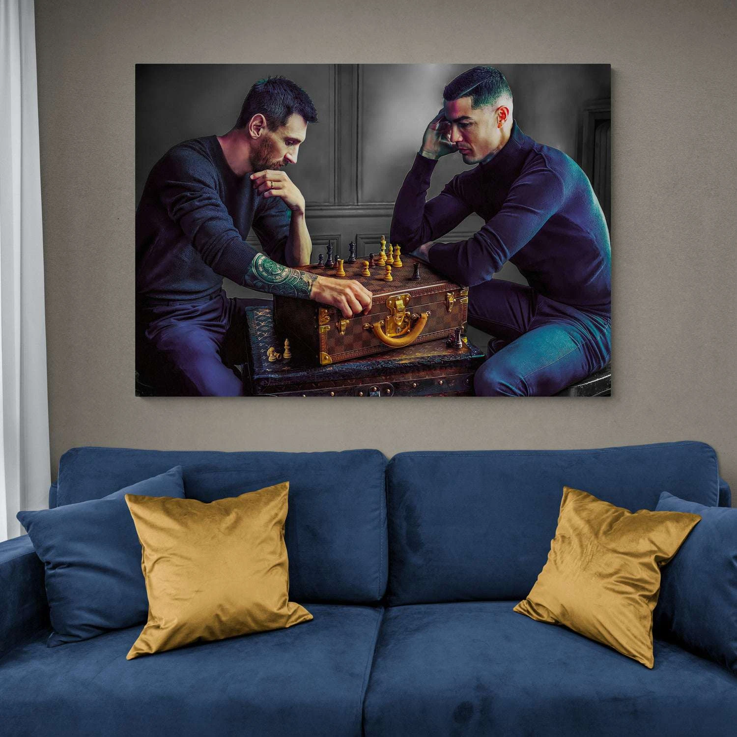 “Above the gods” is a stunning piece of art for the ultimate football and art enthusiast. The hyper realistic design features arguably the two greatest football players of all time, locked in an intense game of chess. The level of detail and skill in the design is truly breathtaking, making this piece a must-have for any art lover who appreciates the talent of both men.