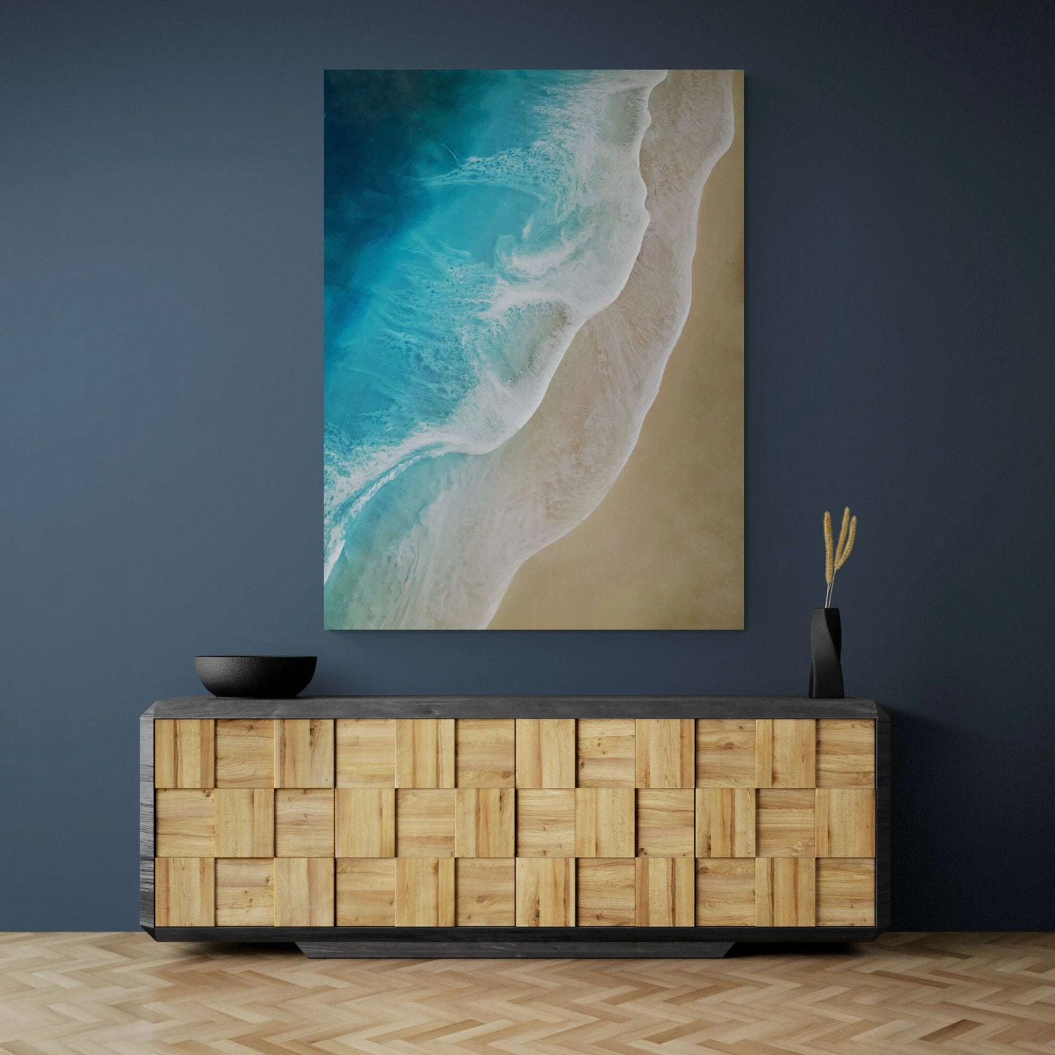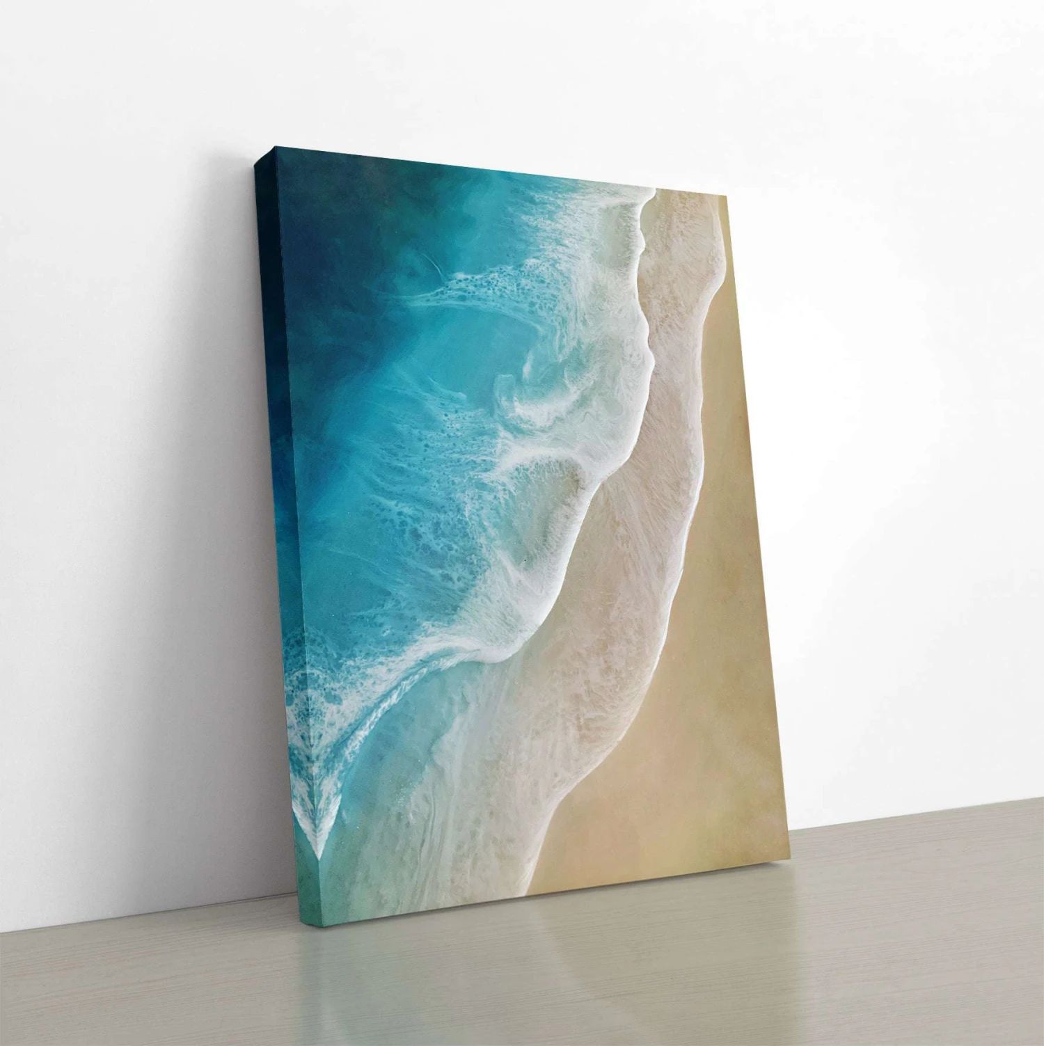 This is a beautiful, high-quality canvas print of an aerial view of waves crashing on the beach. It’s perfect for any room in your home or office.