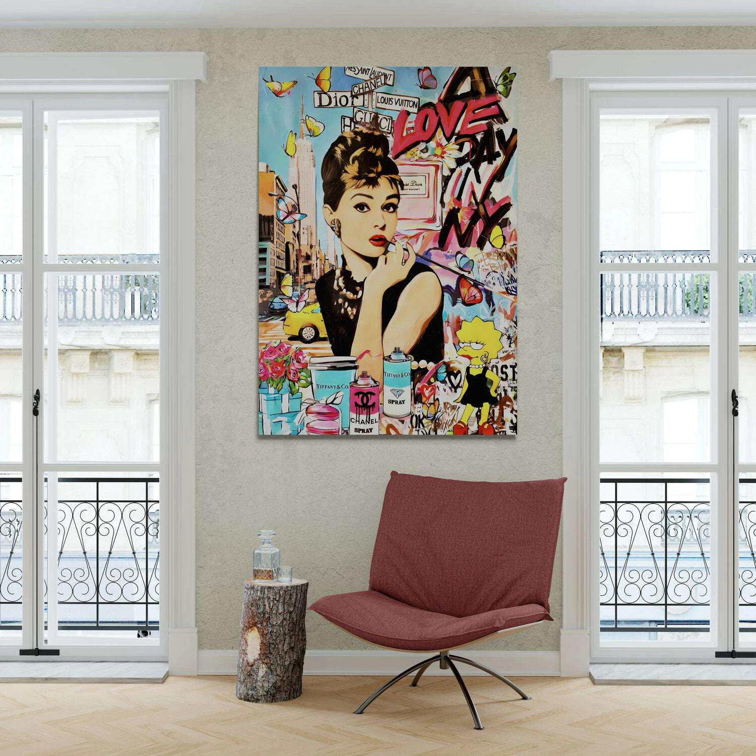 This beautiful piece of art is perfect for those who appreciate the timeless beauty of Audrey Hepburn and the edginess of graffiti art.
