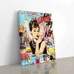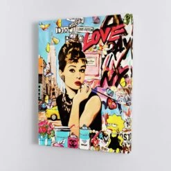 The vibrant colors of the graffiti add a modern twist to the classic image of Audrey Hepburn, making it a unique and eye-catching addition to any room. The high-quality canvas material ensures that the print is long-lasting and will retain its stunning colors and details for years to come.