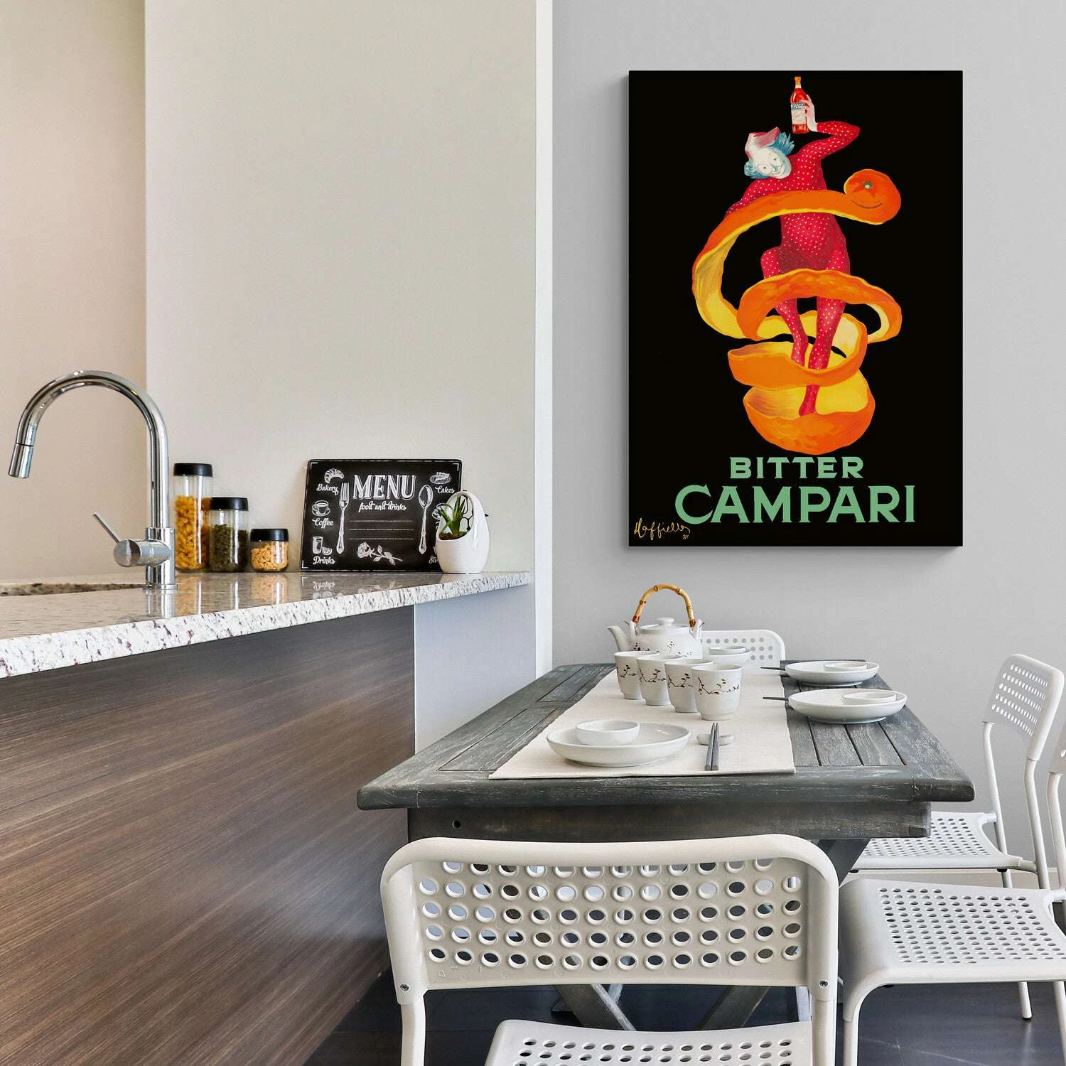 Bitter Campari is a line of drinks made from natural ingredients. Eonetto Cappiello was an Italian and French poster art designer and painter, who mainly lived and worked in Paris. He is now often called ‘the father of modern advertising’ because of his innovation in the field. Evoking a sense of wonder, he was one of the first poster artists to use bold figures popping out of black backgrounds which can be seen with this beautiful print.