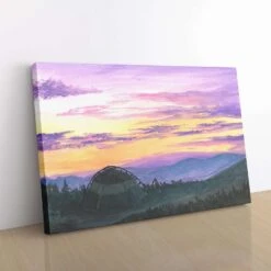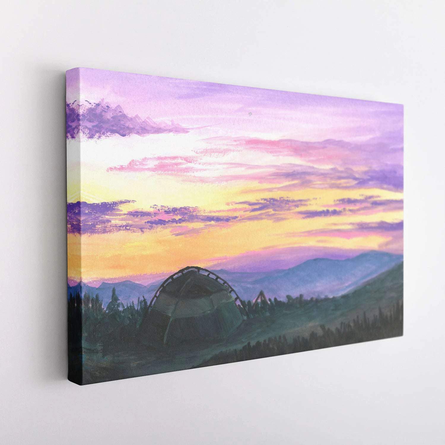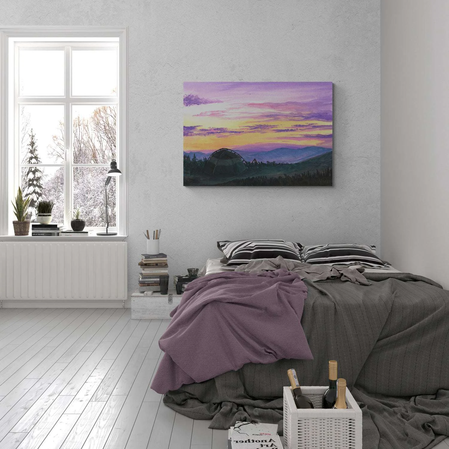 Bliss by Cielo Alegre. AÂ captivating canvas art print that captures the essence of tranquility in every stroke. This mesmerizing piece showcases an evening sunset adorned with enchanting purple hues, inviting you to experience the serenity of twilight in a whole new light.