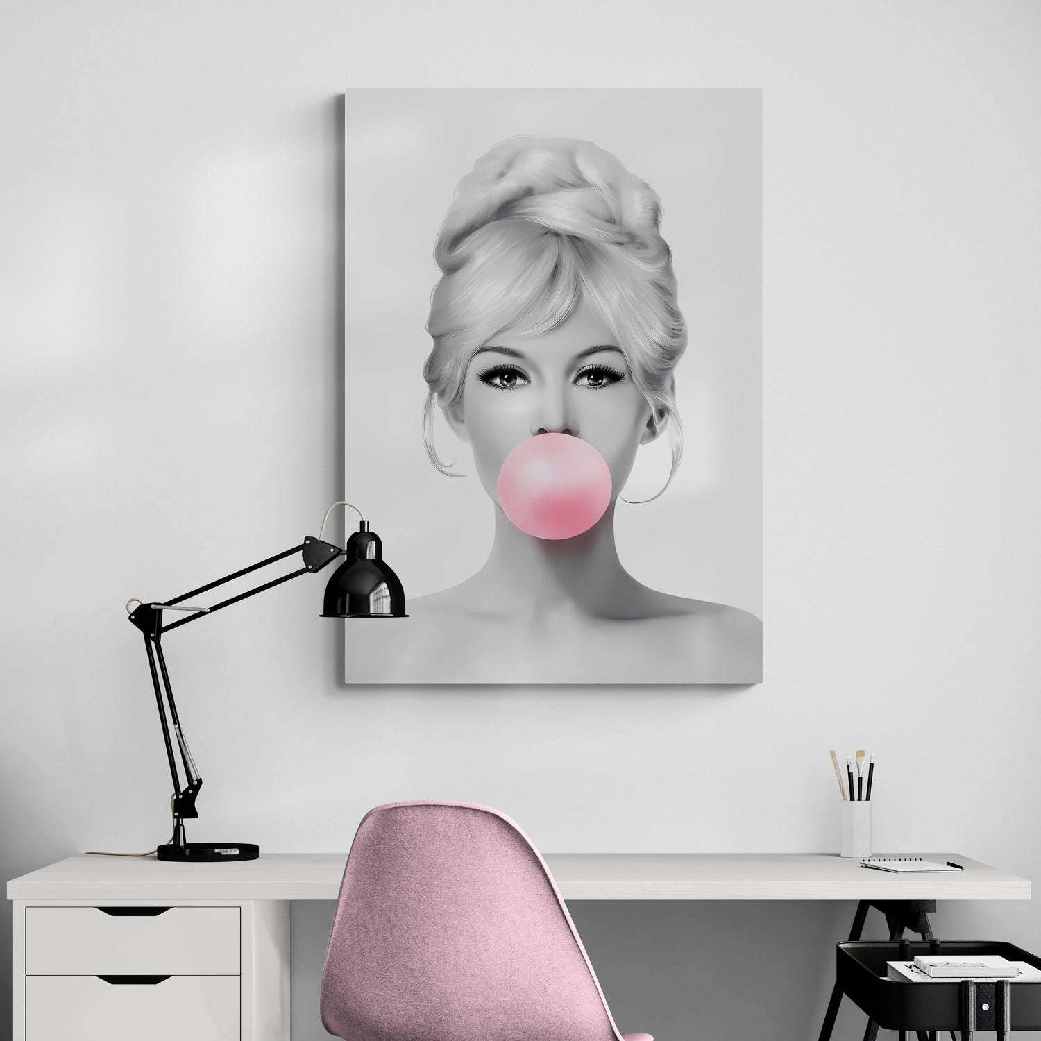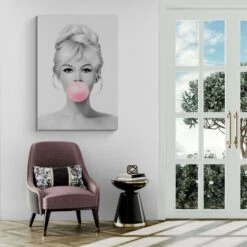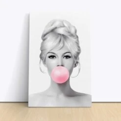 Infuse a touch of classic Hollywood charm into your living space with the Brigitte Bardot Bubble Gum Pop Art Canvas Print. This captivating wall artwork beautifully captures the enchantment of the iconic film star, Brigitte Bardot, presented in a lively and colorful bubble gum design. Ideal for aficionados of cinema and fashion alike, this piece promises to enhance your interior aesthetics and spark engaging conversations.