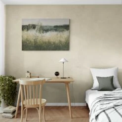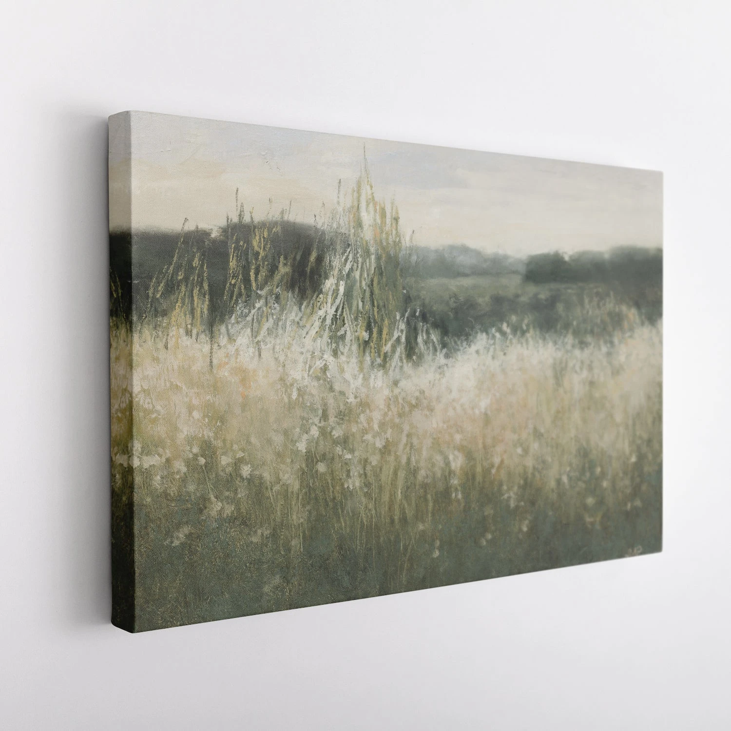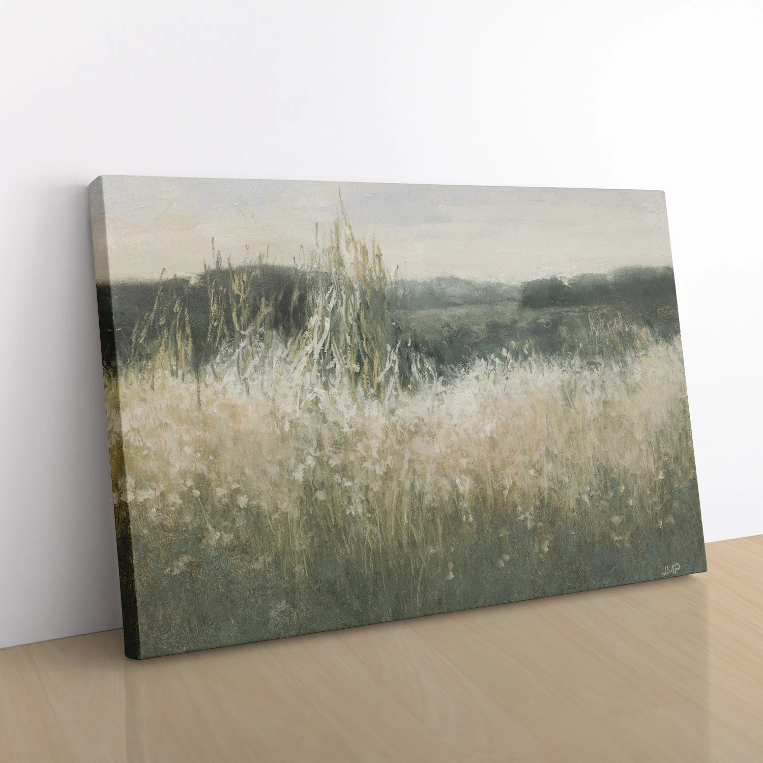 Immerse yourself in the serene beauty of nature with “Field View,” an exquisite canvas art print by renowned artist Julia Purinton. This captivating artwork showcases a tranquil meadow scene, where soft, wispy grasses sway gently under a muted, overcast sky.