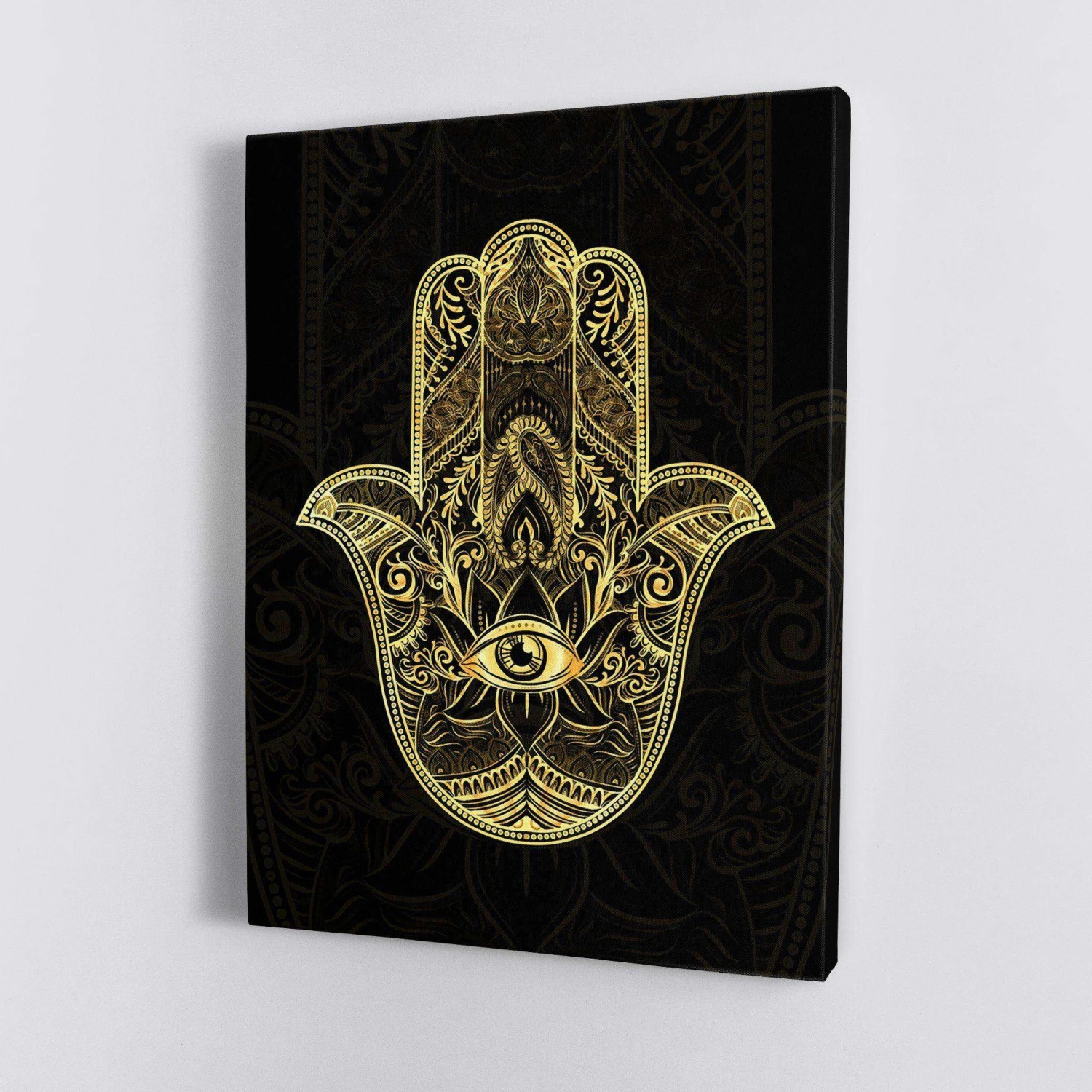 Is some cultures the Hamsa is a talismanic symbol that people believed to protect them from the evil eye and and bring them goodness, abundance, fertility, luck, and good health. This modern and contemporary Hamsa Canvas Art is an elegant addition to any space, large or small.
