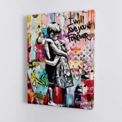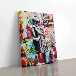 Not only is this canvas art print a stylish addition to your own home decor, but it also makes a thoughtful and unique gift for a best friend, significant other, or anyone you love. Give the gift of “I will love you forever” with this colorful and inspiring street pop art canvas.