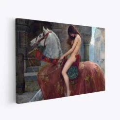 Introducing our stunning canvas art print of Lady Godiva, painted by the talented John Collier. This iconic painting depicts Lady Godiva, the 11th-century Anglo-Saxon noblewoman, who famously rode through the streets of Coventry naked in order to persuade her husband to lower the taxes on his subjects.