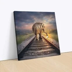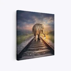 In this surreal art print, an elephant carrying a lit lamp is leading the way. This print will be perfect for anyone looking to bring something new and different into their home.