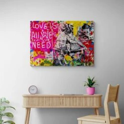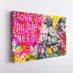 Consider adding this urban graffiti styled canvas art to a space in your home. The words ‘love is all we need’ are sure to bring joy and happiness to the recipient, who will cherish it for years to come.