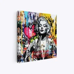 This artwork features a bold and colorful depiction of Marilyn Monroe, set against a backdrop of dynamic graffiti elements. The interplay of colors and textures creates a striking contrast between the glamorous image of Marilyn and the edgy, urban backdrop.