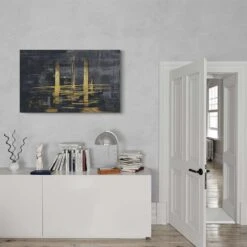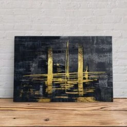 A stunning canvas art print that blends modern abstract design with luxurious black and gold textures. With its unique and captivating look, this piece will effortlessly enhance any space in your home or office.