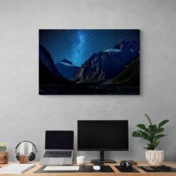 Milford Sound is a fiord in the southwest of New Zealand’s South Island. It’s known for towering Mitre Peak, plus rainforests and waterfalls like Stirling and Bowen falls, which plummet down its sheer sides. This canvas print capture the magnificence of Milford Sound at night, making it a perfect addition to any home or office.