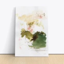 Palette of Spring II by Laura Horn is an abstract canvas art print that beautifully captures the essence of spring’s renewal with its soft, earthy color scheme. The composition features washes of green, blush, beige, and hints of brown, creating a gentle and harmonious blend of colors. This abstract piece, marked by fluid strokes and delicate line work, evokes a sense of organic movement and freshness.