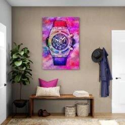 Pink Hublot Abstract Canvas Art Print. Hublot watches are Swiss-made with a savoir-faire that you will love. This pink abstract canvas art print is perfect for your home, office, or studio. Bring the beauty of Swiss watchmaking into your life with this piece of art.