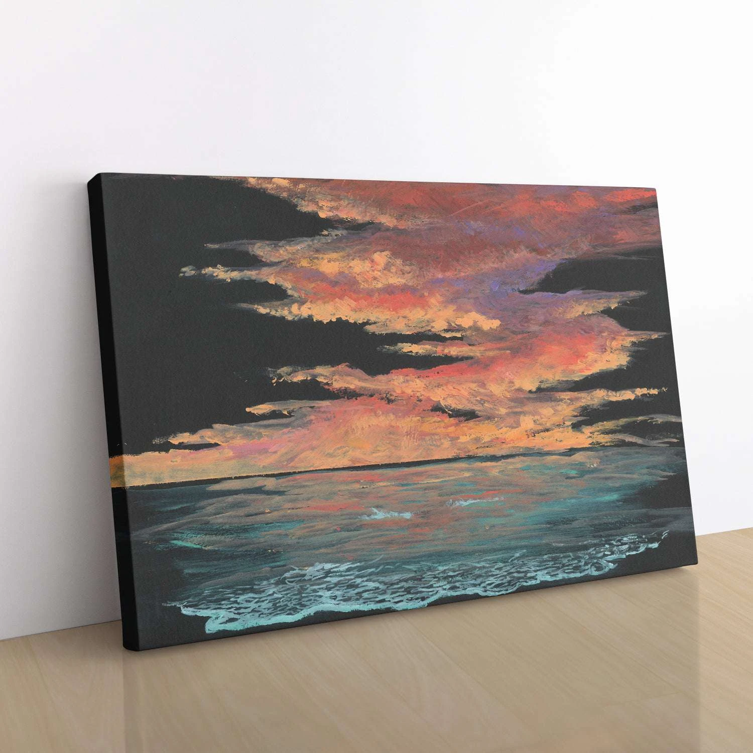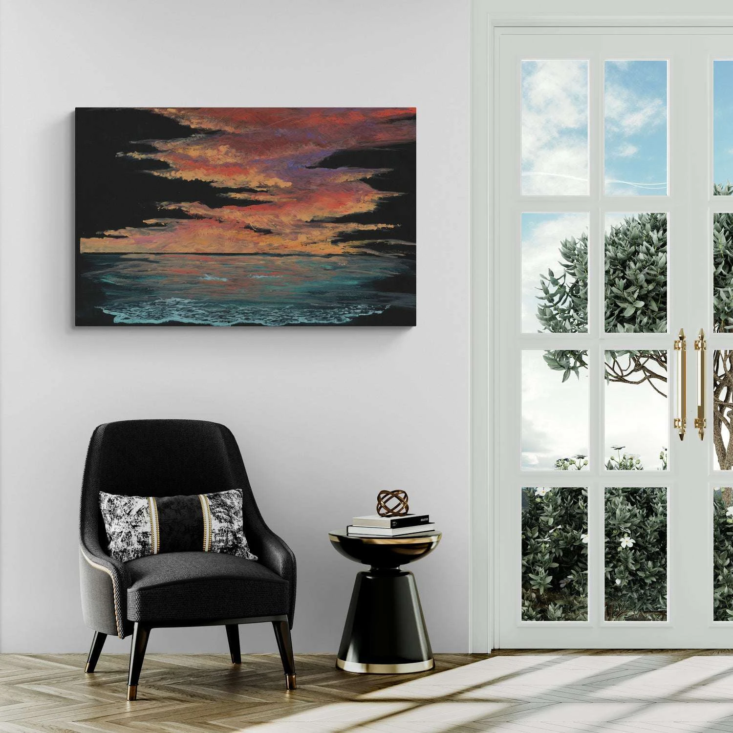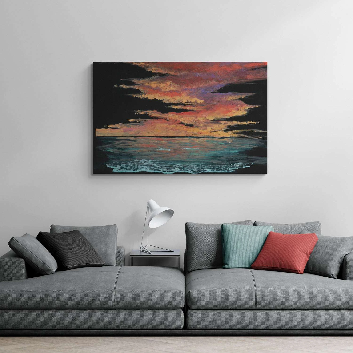 Introducing “Surreal” by Cielo Alegre, a captivating canvas art print that transports you to the serene beauty of an evening sunset over a tranquil beach scene. This stunning piece of art effortlessly combines elements of surrealism with the soothing allure of nature, creating a visual masterpiece that will transform any space.