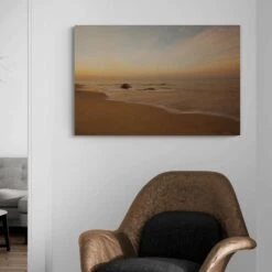 Introducing “Tranquil Sands” by Aledanda, a captivating canvas art print that brings the serene beauty of the coastline into your living space. This exquisite piece captures the gentle embrace of the sea as it meets the golden sands, under a tranquil sky painted in soft hues of dusk. The delicate blending of colors and the smooth, flowing lines evoke a sense of calm and relaxation, making it a perfect addition to any room seeking a touch of nature’s tranquility.