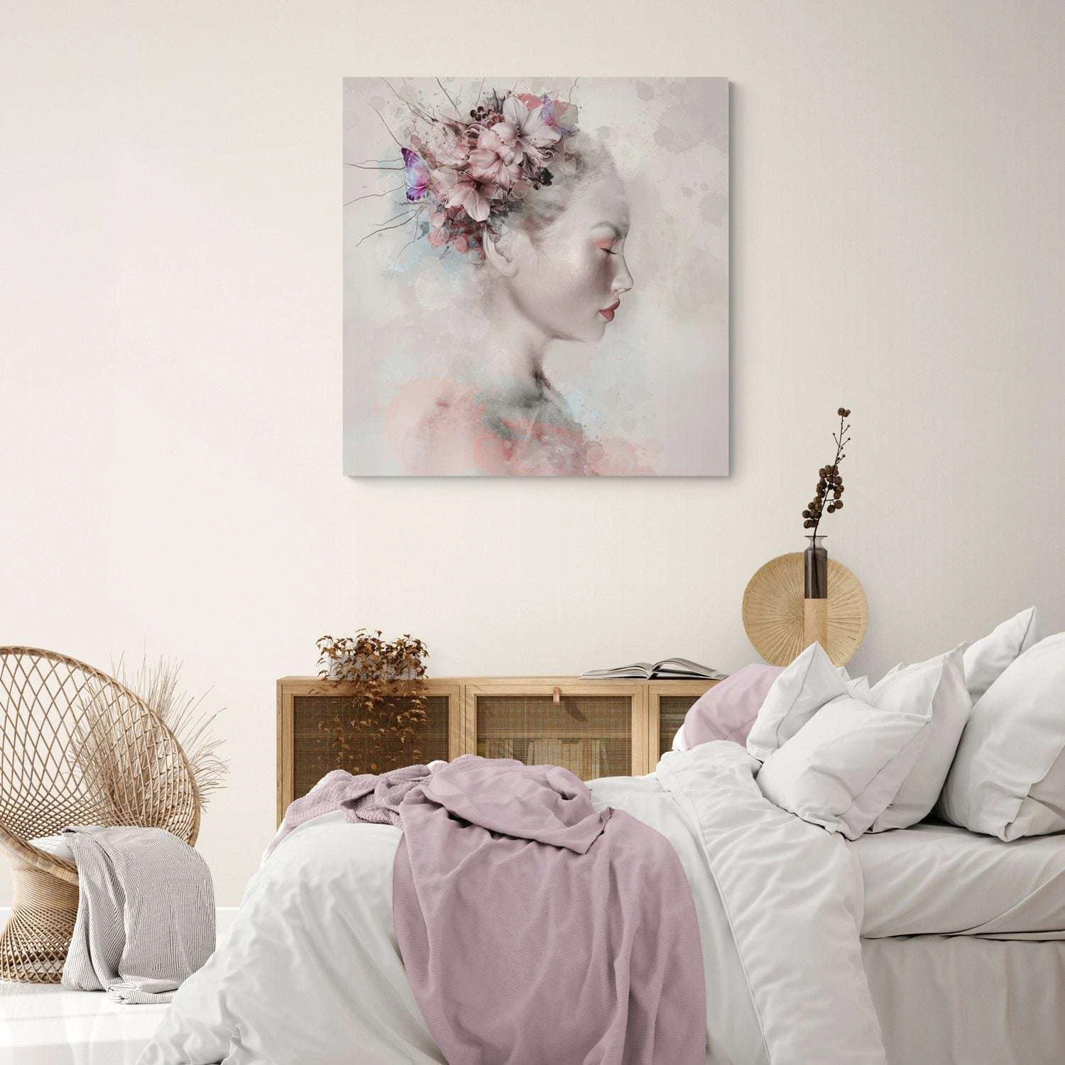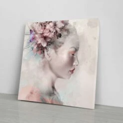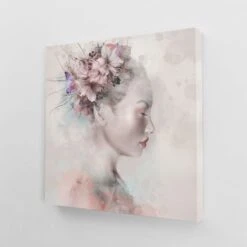 Women with Lilies in her hair. The sweet and innocent beauty of the lily flower has given it the association of fresh life and rebirth. This canvas art makes a perfect gift for any occasion – new mom, wife, sister, friend, or daughter.