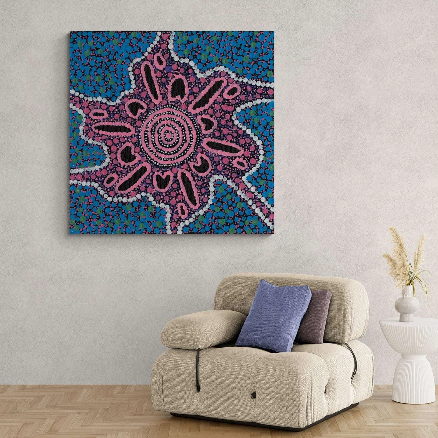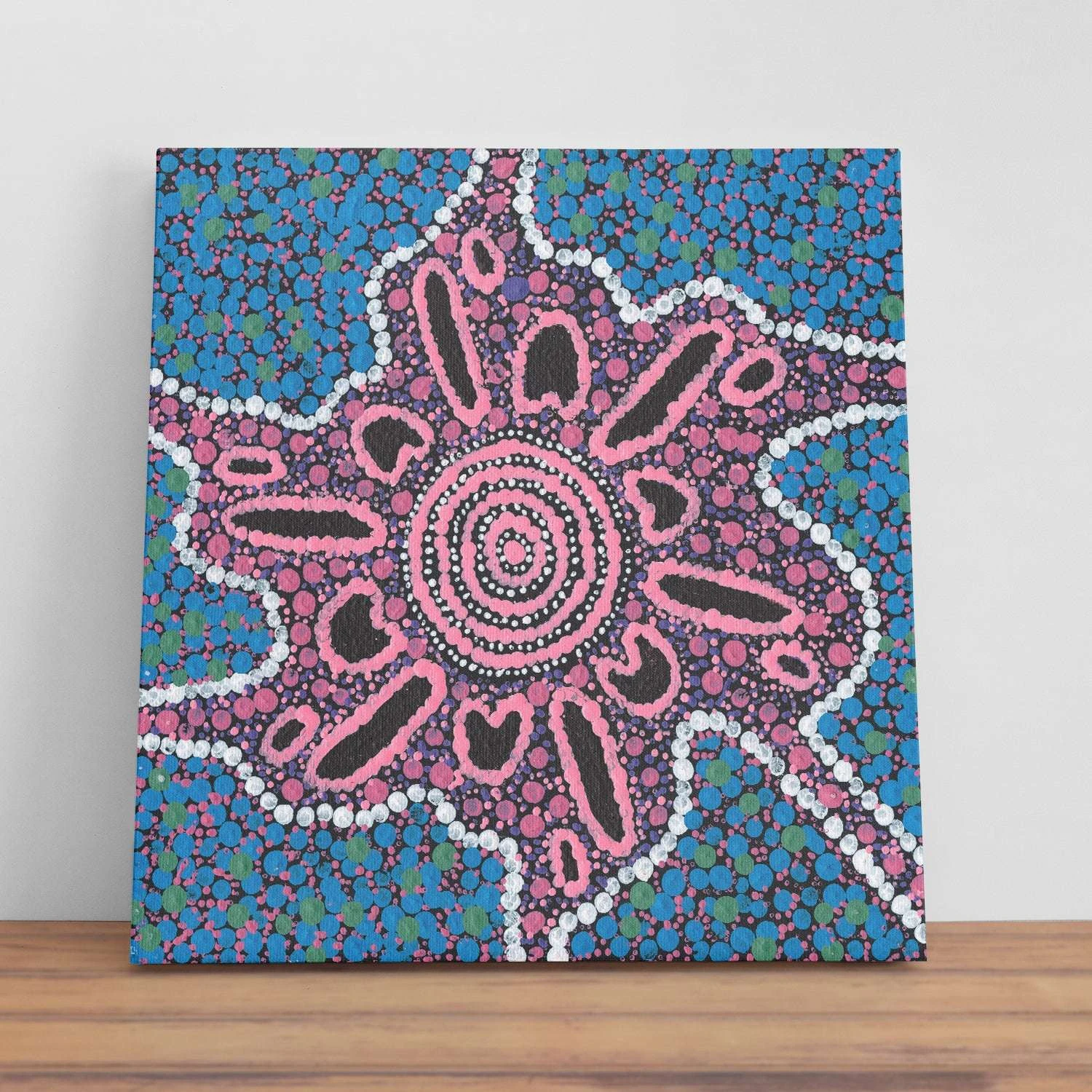 Julianne, born in Perth and of Whadjuk heritage through her mother, spent her formative years in Ngaruawahia Tainui, New Zealand, with her father’s side. She loves to create art using acrylics and natural colors, trying out different ways to express herself while keeping a connection to traditional culture. Her art journey officially started when she got into the WA Revealed Emerging Artist exhibition in 2020. With a background in education, Julianne is active in her community, using her art to talk about Aboriginal challenges and support positive changes.